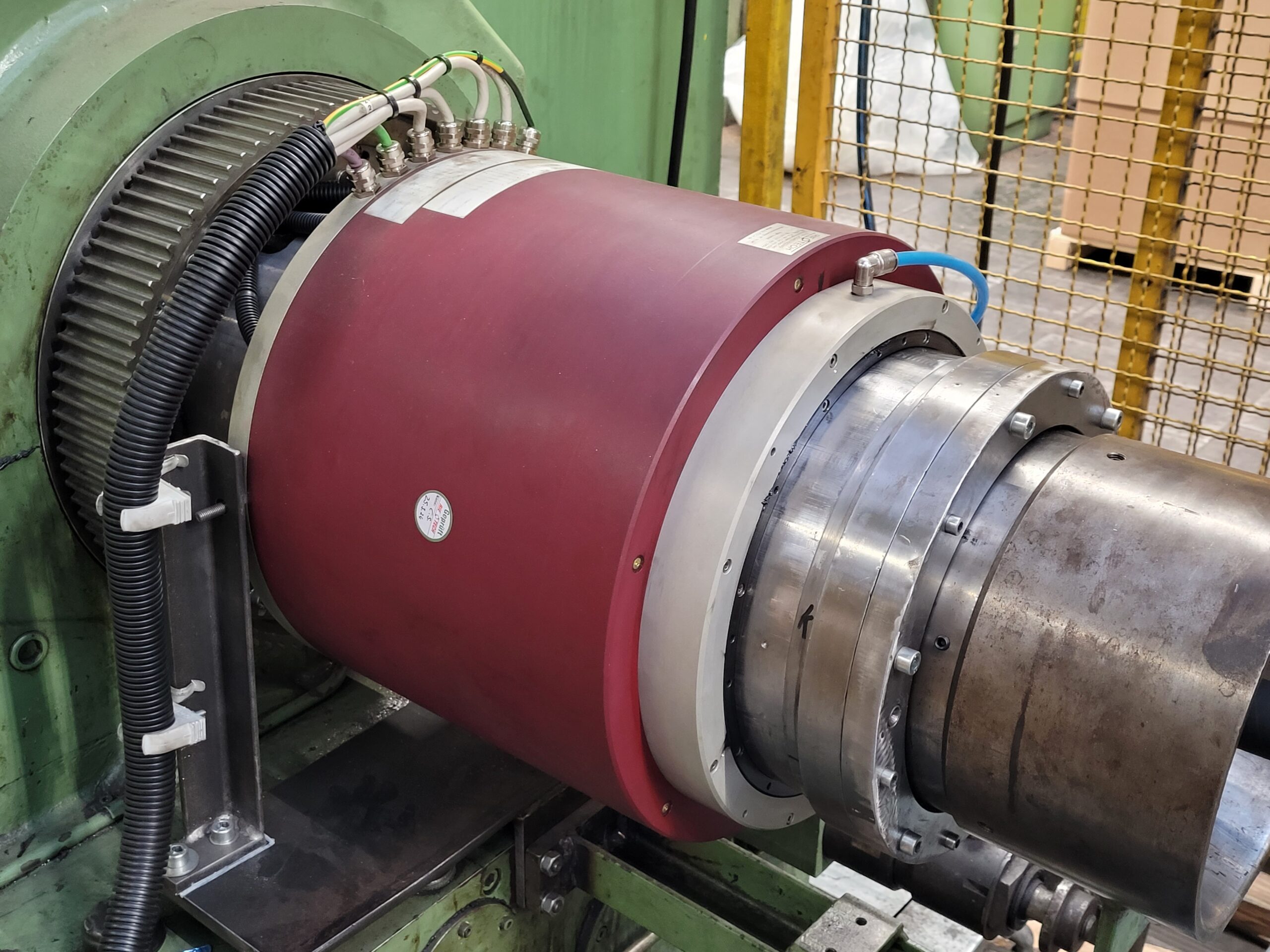 Beim Schirmflechten von Hochspannungskabeln spielt der Schleifringkörper mit einer Bohrung von Ø 280 mm eine zentrale Rolle. Er ermöglicht eine präzise Führung der Leiterstränge und sorgt durch seine Drehbewegung für eine gleichmäßige Flechtung des Metallschirms, der das Kabel vor elektromagnetischen Störungen schützt.