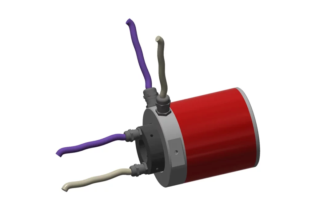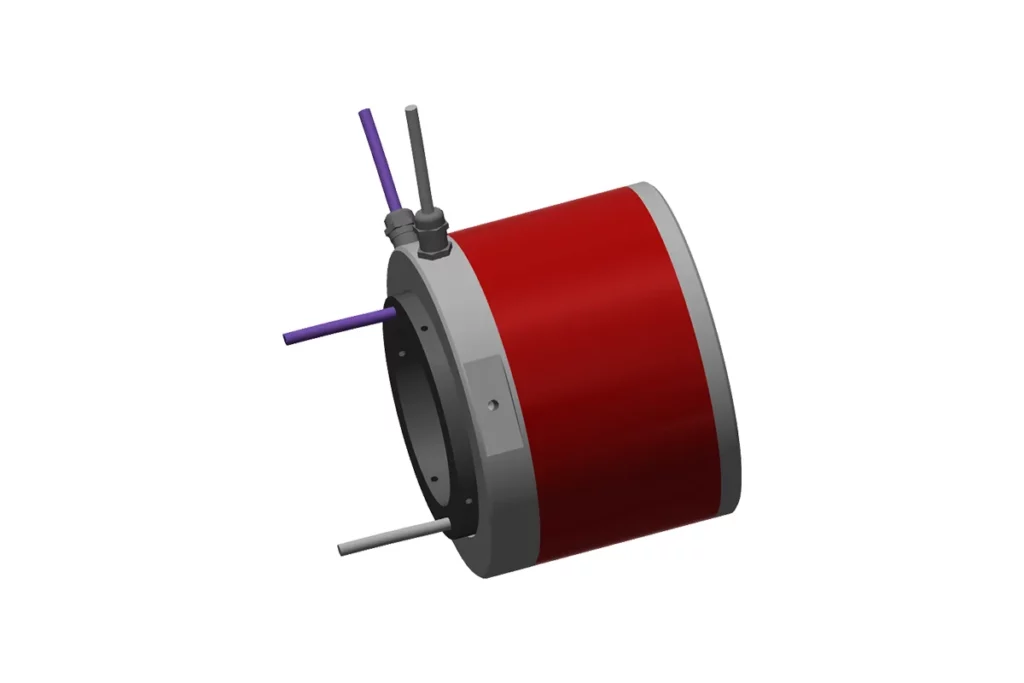 The through-bore makes the size of these slip ring assemblies larger, which makes them a slightly more expensive solution. However, they are an excellent choice when the SRK type series is not suitable due to space or installation requirements.